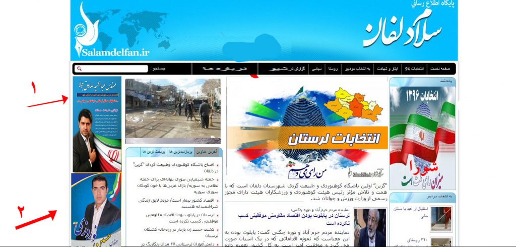 کاندیداهایی که این بخش را انتخاب نمایند در مدت ۶ روزه تبلیغات در صفحه مربوط به تبلیغات شورا قرار می گیرند( مطابق شکل زیر فلش شماره ۱) و هر داوطلب دارای یک صفحه اختصاصی می باشد تفاوت این بخش با پکیج شماره ۱ در این است که در صفحه اصلی سایت قرار نمی گیرند اما به همراه دیگر کاندیداها یک مرتبه در صفحه اصلی معرفی می شوند ( مطابق شکل زیر فلش شماره ۲)و صفحه اختصاصی آنها شامل