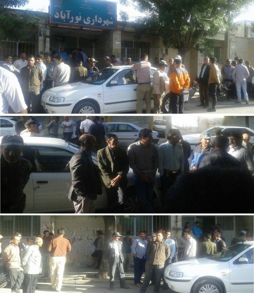 بیش از شش ماه حقوق معوقه سبب شد تا کارگران شهرداری نورآباد دست از کار بکشند و ساعاتی را در مقابل شهرداری این شهر اعتصاب کنند تا شاید مسئولان حقوق عقب افتاده آنها را پرداخت کند.