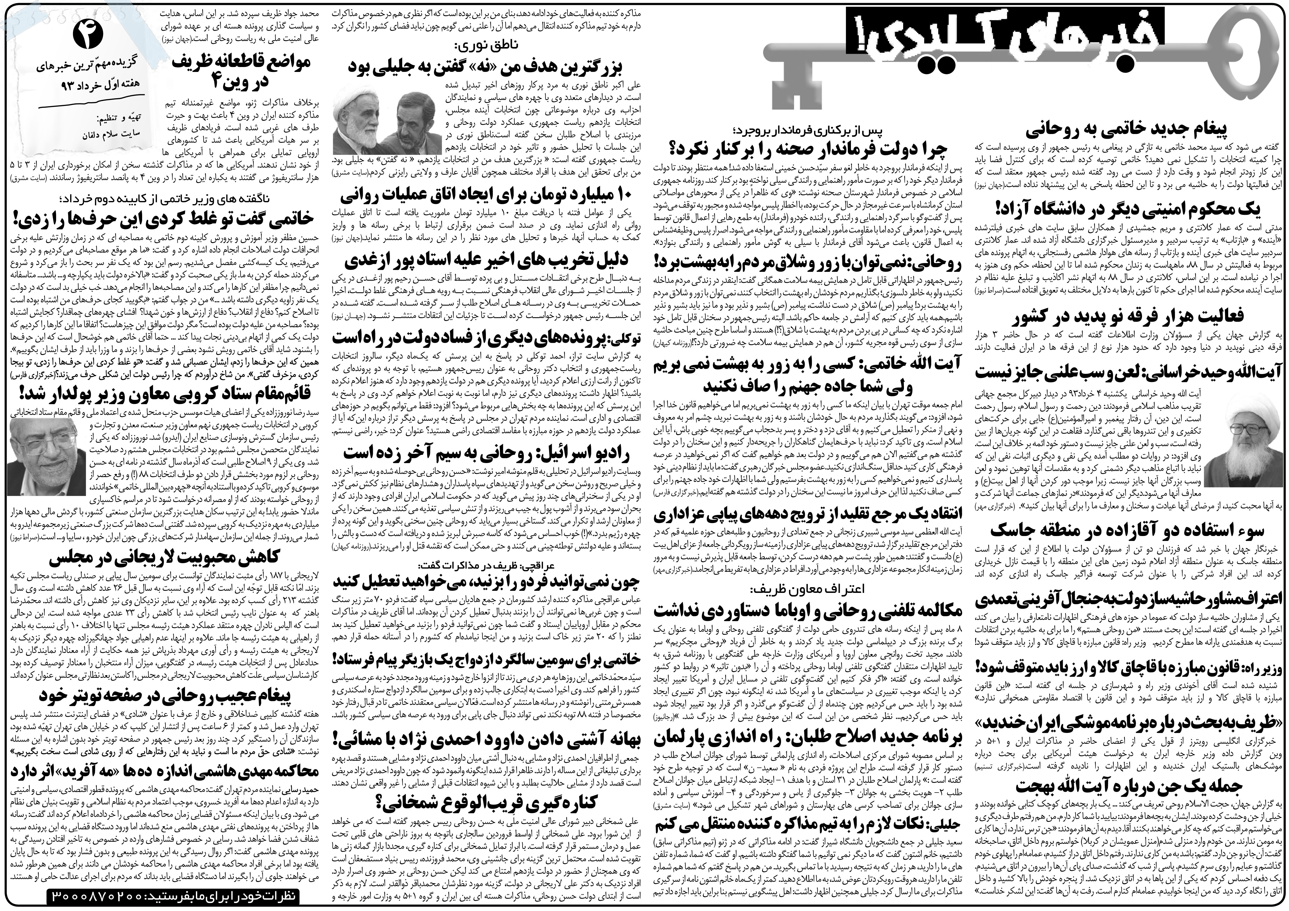 خبر های کلیدی(3،4) اخبار داغ هفته*برای مشاهده اخبار بر روی تصاویر کلیک کنید* جهت مشاهده خبرهای کلیدی هفته های پیش اینجا کلیک کنید مطالب مرتبط:خبرهای کلیدی(5،6)نمایندگان تهران بعد از نمایندگی چه می کنند؟مهاجم سابق آرژانتین در پرسپولیس+عکسعکس منتشرنشده از دیدار مسئولان و امام راحلپوستر/یا اباعبدالله الحسینجدول روسایی که فرجی دانا تغییر دادتیم ملی والیبال در هشت بازی گذشته خوب بود یا بد؟ +آنالیز کلی وضعیت ایران7 فینال برای معرفی قهرمان لیگ برتر/ پرسپولیس راحت قهرمان میشود! +جدول