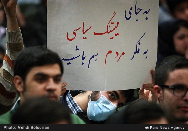 اما هنوز چند روز از ماجرای سفر دیرهنگام ابتکار به اهواز نگذشته بود که وی راهی یک میتینگ سیاسی برای افتتاح یک تشکل دانشجویی جناحی شد. متینگ سیاسی که با مطالبات زیست محیطی دانشجویان همراه شد و دانشجویان با پلاکاردهای مختلف از ابتکار خواستند که دست از سیاسی کاری بردارد و اولویت کاری اول خود را محیط زیست قرار دهد.