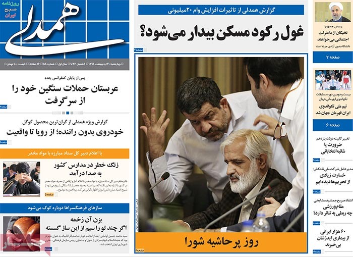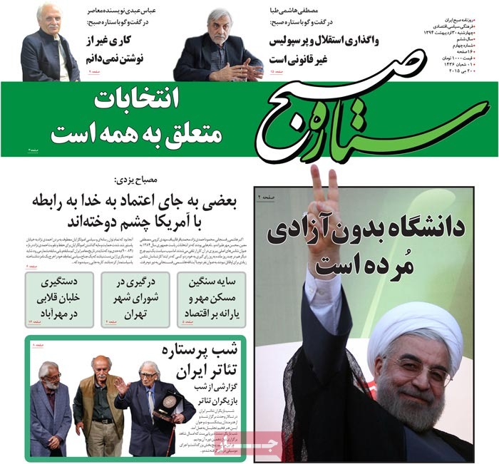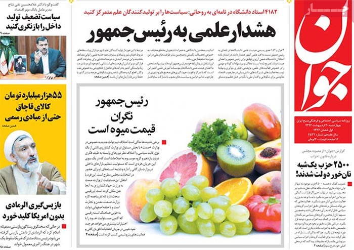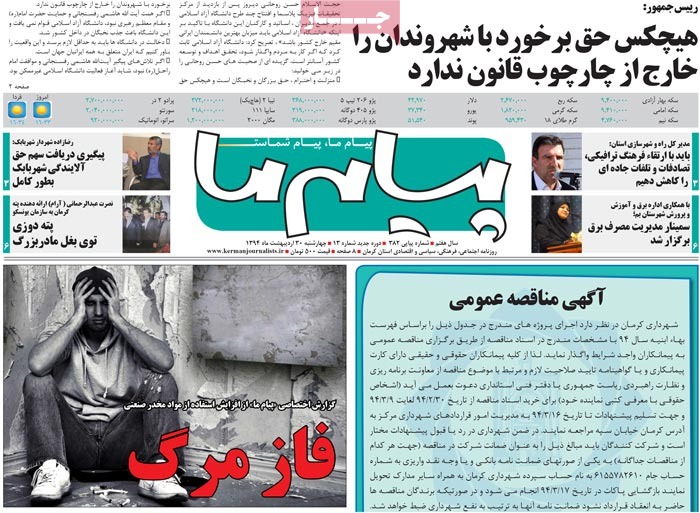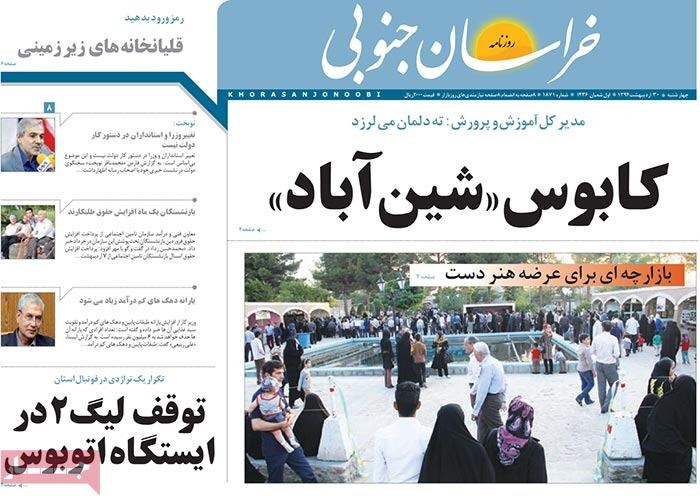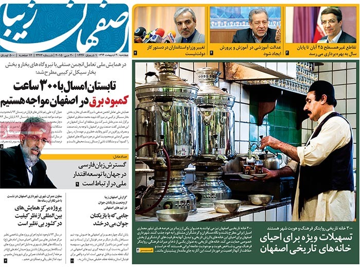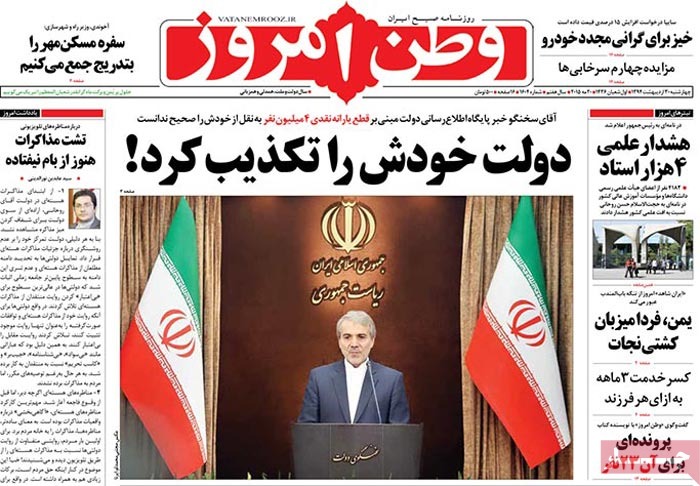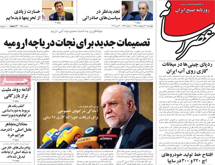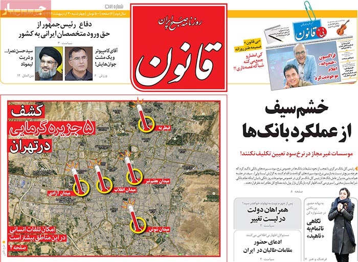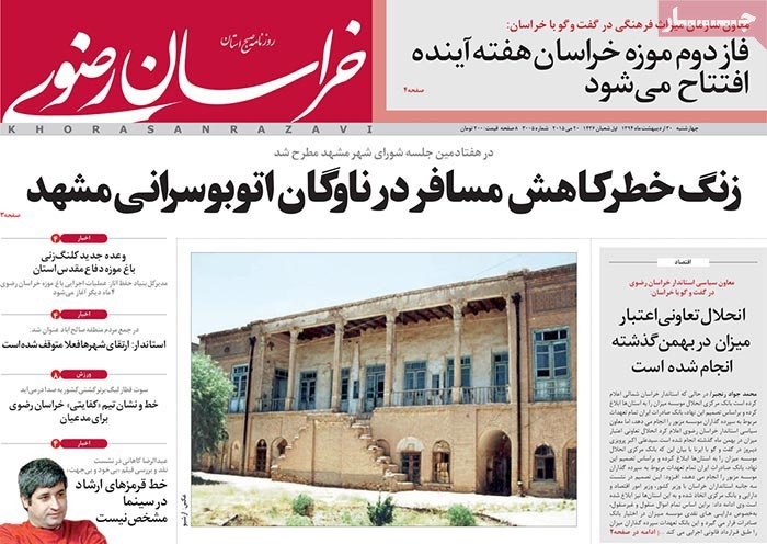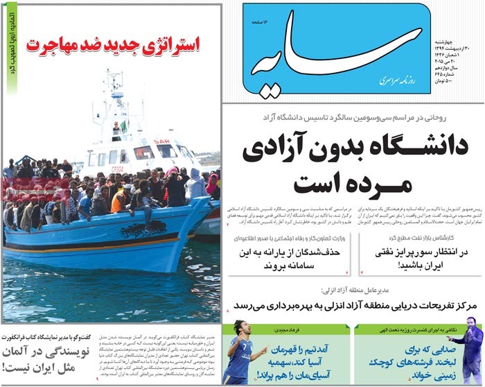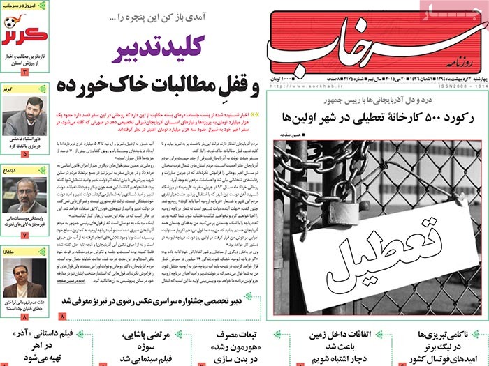 صفحه اول روزنامه های چهارشنبه عکس/ نیم صفحه اول روزنامه های سیاسی و ورزشی امروز 30 اردیبهشت 94 در این خبر تصاویر صفحه اول روزنامههای سیاسی و ورزشی کشور را میتوانید ببینید. مطالب مرتبط:تصاویر صفحه نخست روزنامههای امروز (شنبه، ۲7شهریور)عکس/ صفحه نخست روزنامههای یکشنبه 10 مردادصفحه نخست روزنامه های شنبه 2 خردادصفحه اوّل روزنامه های امروز شنبهصفحه اول روزنامه های امروز صبحصفحه اول جالب یکروزنامه امروز+عکستصاویر صفحه نخست روزنامههای امروز (چهارشنبه، 24شهریور)جمیله کدیور: تیتر «مردم امروز» گل به خودی بود