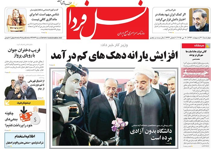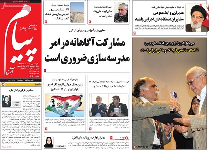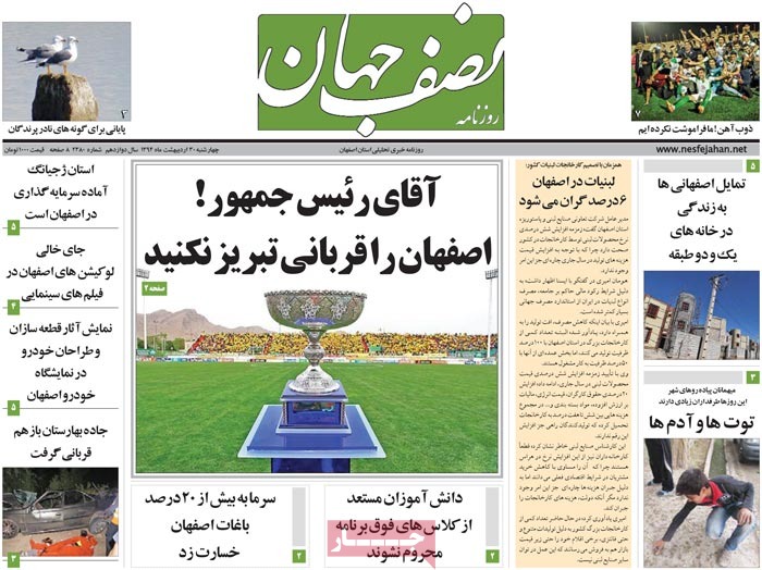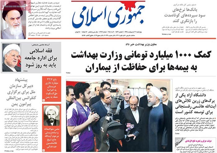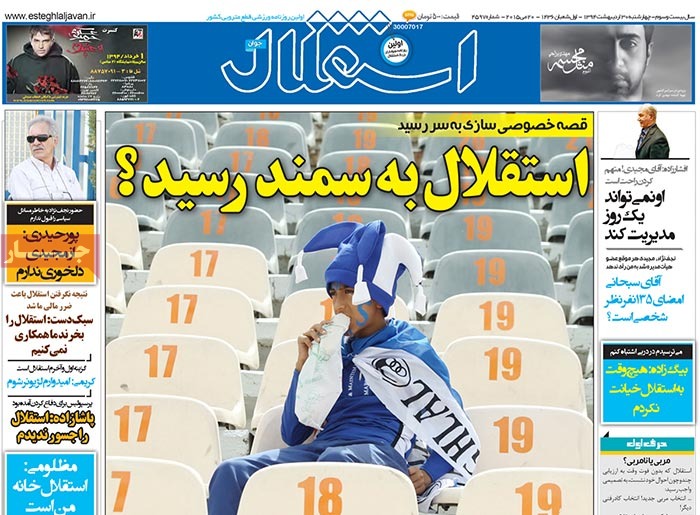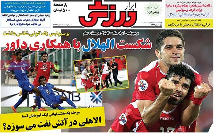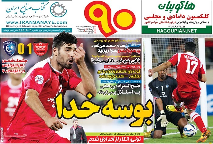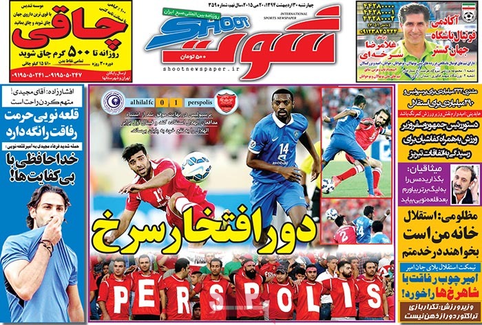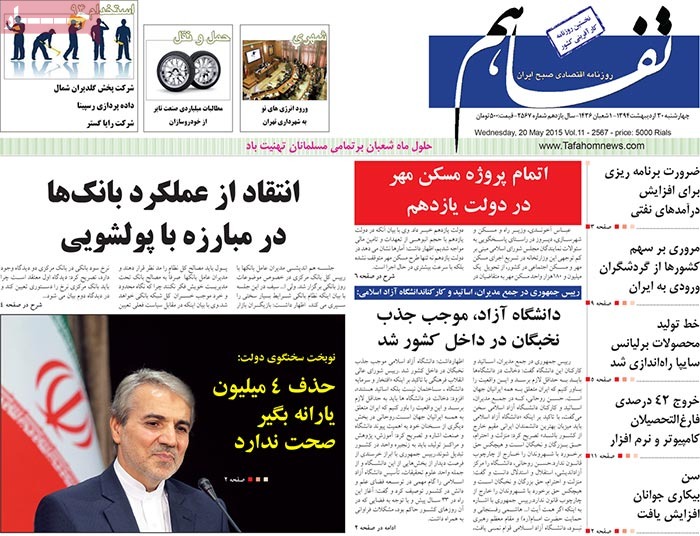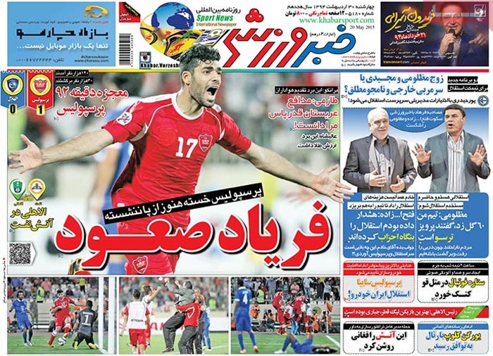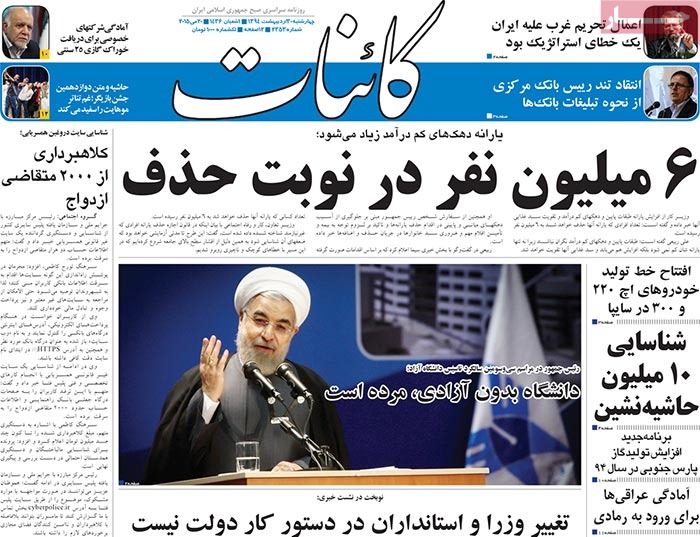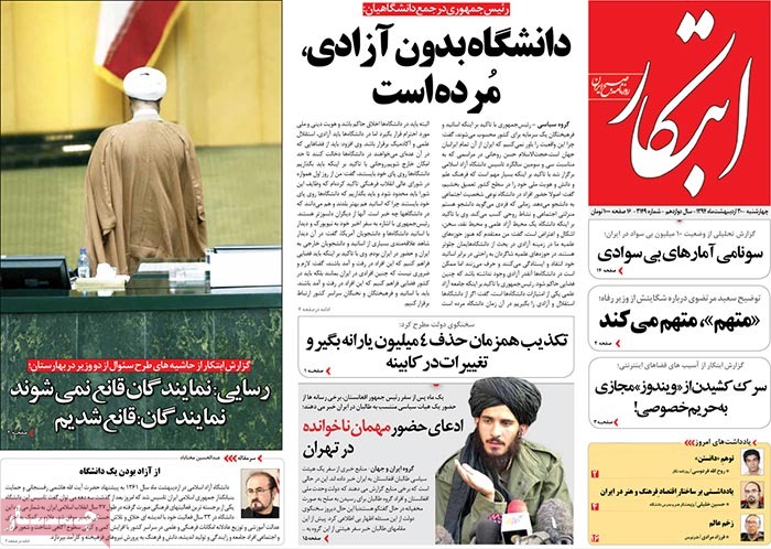 صفحه اول روزنامه های چهارشنبه عکس/ نیم صفحه اول روزنامه های سیاسی و ورزشی امروز 30 اردیبهشت 94 در این خبر تصاویر صفحه اول روزنامههای سیاسی و ورزشی کشور را میتوانید ببینید. مطالب مرتبط:تصاویر صفحه نخست روزنامههای امروز (شنبه، ۲7شهریور)عکس/ صفحه نخست روزنامههای یکشنبه 10 مردادصفحه نخست روزنامه های شنبه 2 خردادصفحه اوّل روزنامه های امروز شنبهصفحه اول روزنامه های امروز صبحصفحه اول جالب یکروزنامه امروز+عکستصاویر صفحه نخست روزنامههای امروز (چهارشنبه، 24شهریور)جمیله کدیور: تیتر «مردم امروز» گل به خودی بود