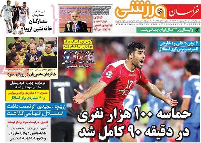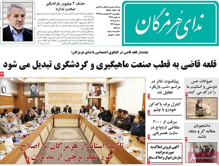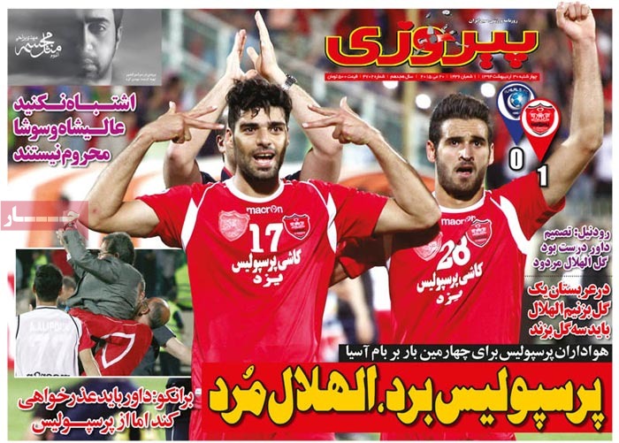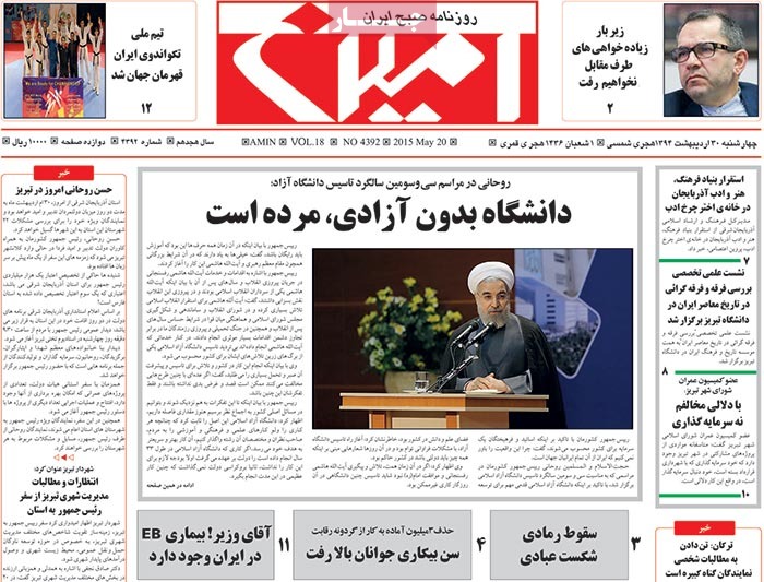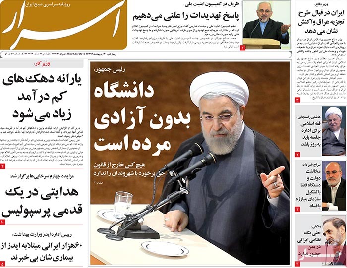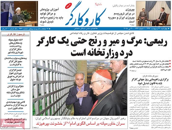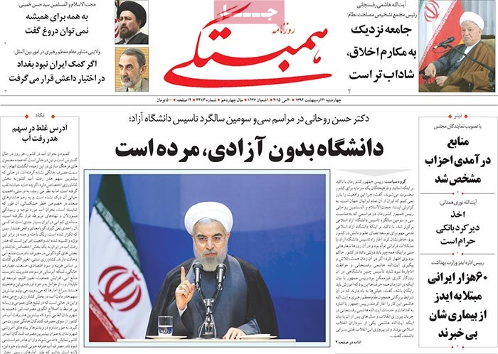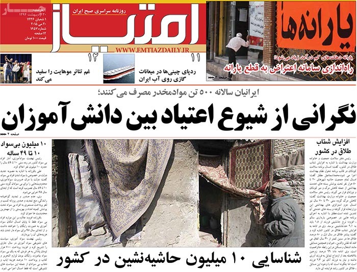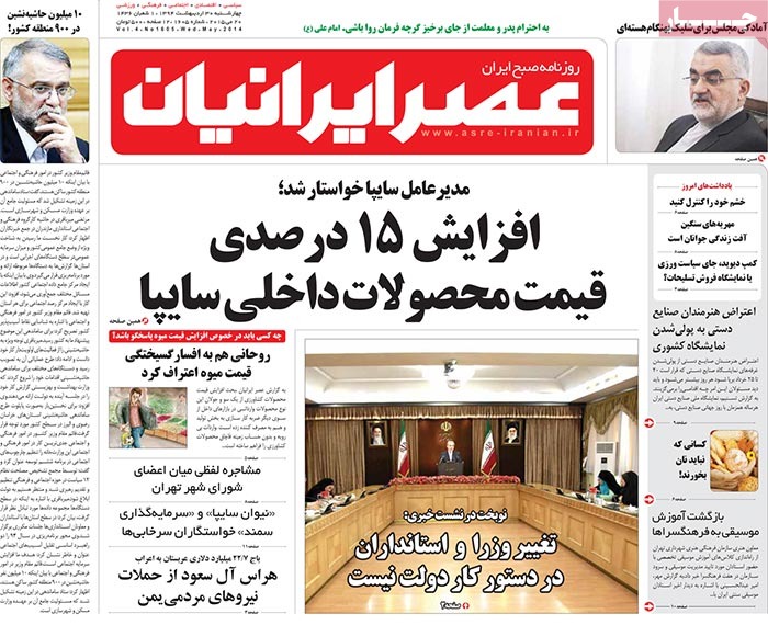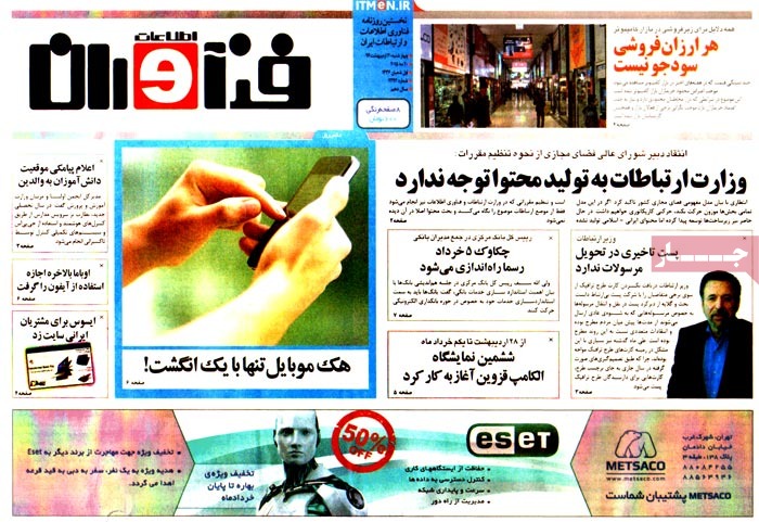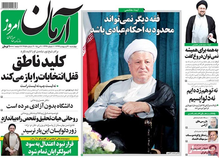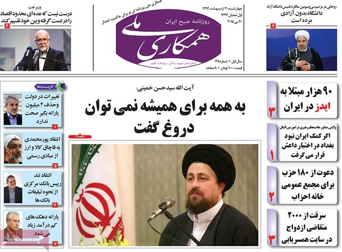صفحه اول روزنامه های چهارشنبه عکس/ نیم صفحه اول روزنامه های سیاسی و ورزشی امروز 30 اردیبهشت 94 در این خبر تصاویر صفحه اول روزنامههای سیاسی و ورزشی کشور را میتوانید ببینید. مطالب مرتبط:تصاویر صفحه نخست روزنامههای امروز (شنبه، ۲7شهریور)عکس/ صفحه نخست روزنامههای یکشنبه 10 مردادصفحه نخست روزنامه های شنبه 2 خردادصفحه اوّل روزنامه های امروز شنبهصفحه اول روزنامه های امروز صبحصفحه اول جالب یکروزنامه امروز+عکستصاویر صفحه نخست روزنامههای امروز (چهارشنبه، 24شهریور)جمیله کدیور: تیتر «مردم امروز» گل به خودی بود
