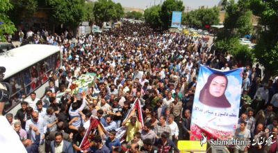 مردم قدر شناس دلفان امروز در تشییع جنازه شهیده ترور، خانم اکبریان سنگ تمام گذاشتند.