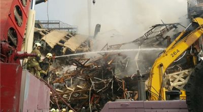 ساختمان پلاسکو که از صبح امروز دچار حریق گسترده شده بود به دلیل حجم آتش و فرسوده بودن ساختمان به صورت کامل فرو ریخت.