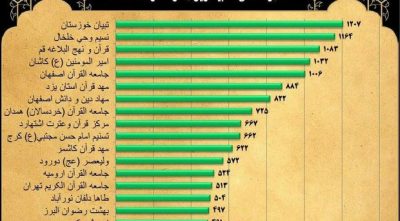 موسسه تبیان خوزستان، نسیم وحی خلخال و موسسه قرآن و نهج البلاغه قم به ترتیب در رتبه های اول تا سوم بیشترین مشارکت در ثبت نام را داشته اند.